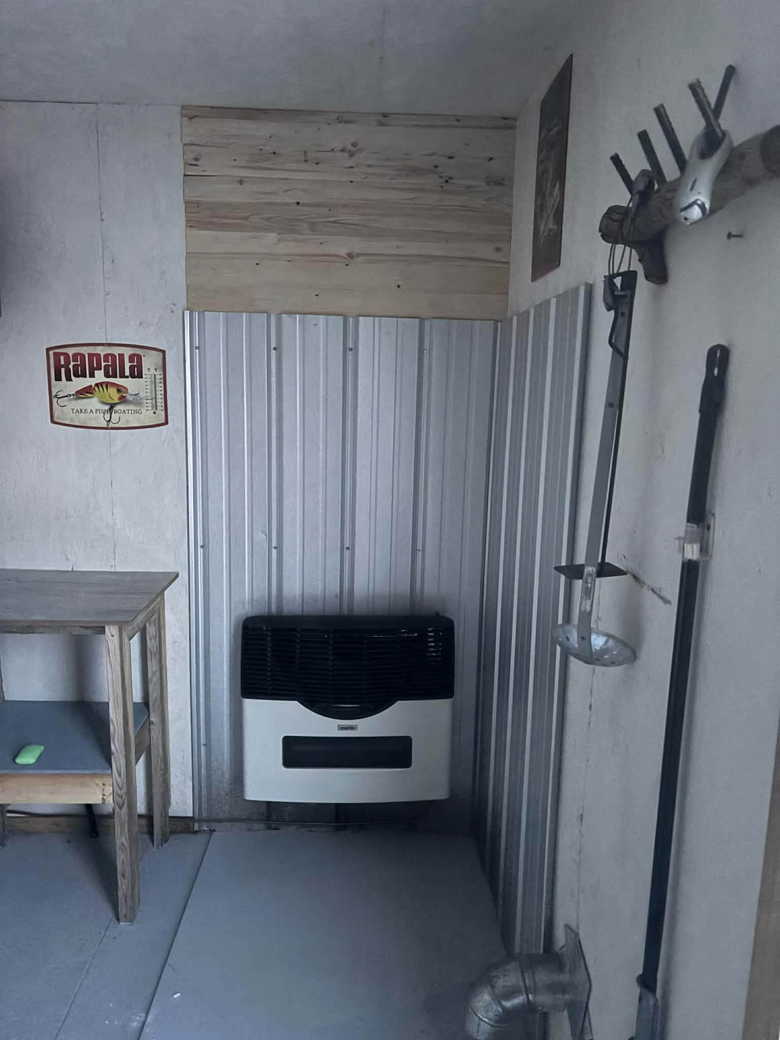 Check in is 1pm - Check out is 11am. Shack 3 made from a walk in cooler. Size: 7’X 14’ .Accommodates up to four guests, offering a warm and cozy retreat with a wood stove and complimentary firewood. Enjoy the convenience of a cook stove(propane provided), cookware, and utensils for preparing meals. A generator(fuel provided) provides power for lighting and charging devices, ensuring a comfortable ice fishing experience. A seperate bathroom shack is available to use during your stay. Dogs are welcome in this shack.